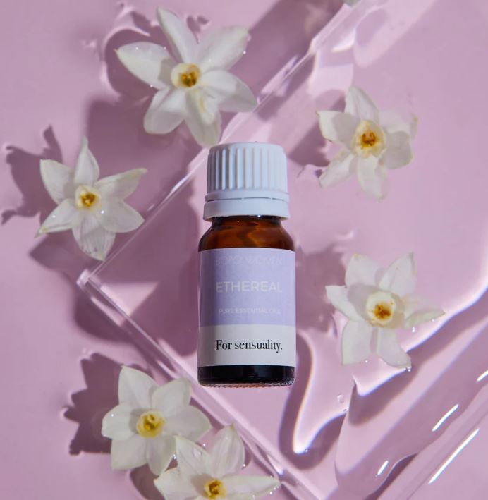Ethereal - Ethereal features a blend of 100% pure essential oils that work together to cultivate a sense of pleasure & connection. A floral formula combining jasmine absolute, neroli, frankincense and sweet orange essential oils. Use a few drops in your diffuser or oil burner to create a natural therapeutic fragrance that whisks you away to memories of tropical holidays.