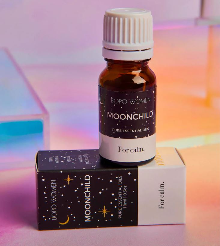 Moonchild - Moonchild features a blend of 100% pure essential oils that work together to help you find calm. Combines calming blue tansy, bergamot, patchouli and lavender essential oils. Use a few drops in your diffuser or oil burner to create a beautiful natural therapeutic fragrance.